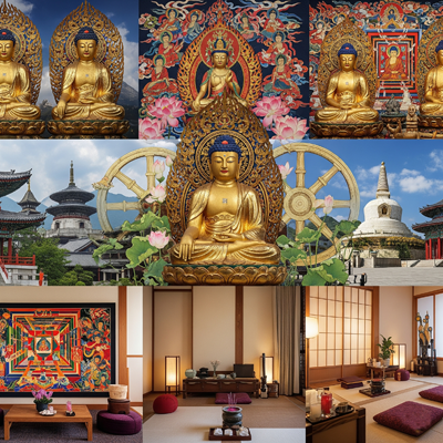 Budismo Tibetano: Uma forma de Budismo Mahayana que se desenvolveu no Tibete, combinando elementos do Budismo Indiano, do Tantrismo e da cultura tibetana. Enfatiza a prática da meditação, a visualização de divindades ( yidam ), a recitação de mantras e os ensinamentos do Vajrayana ( Veículo Diamantino ), um caminho esotérico para a iluminação.